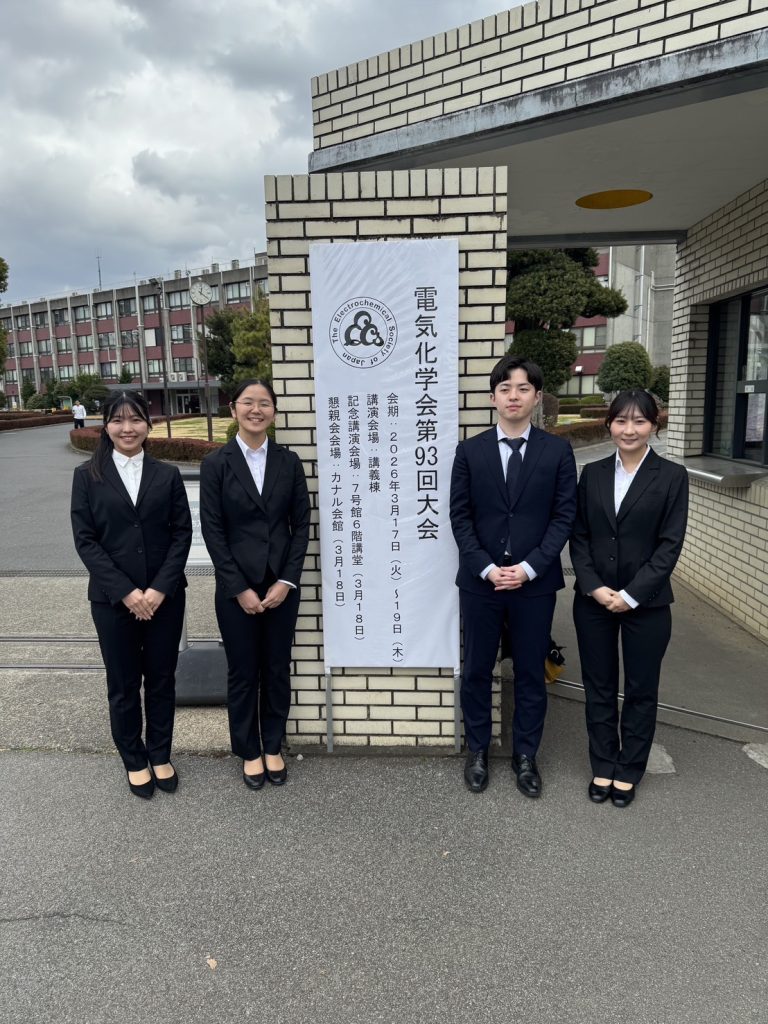 電気化学会第93回大会が東京理科大学野田キャンパスにて開催され、研究室メンバーが下記の発表を行いました。
